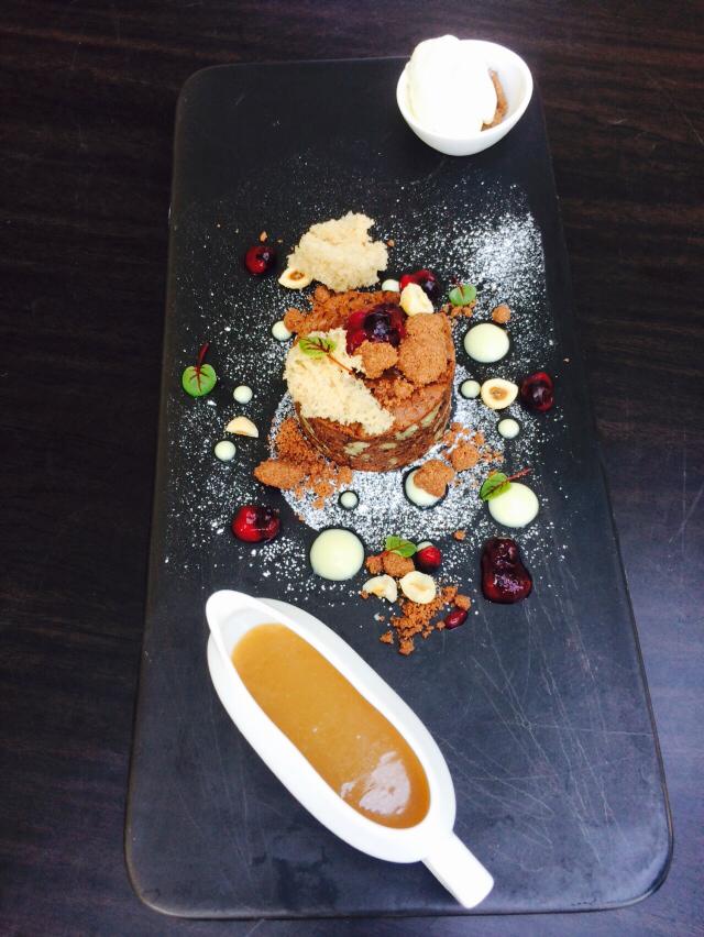 Last, but not the least was the Pavilion Chocolate Fudge, with jaggery caramel sauce. The fudge was fresh, soft and moist and loaded with nuts. There was also Creme Brulee with Apricot Fig Biscotti (BOP) but truth be told, I loved the fudge better.